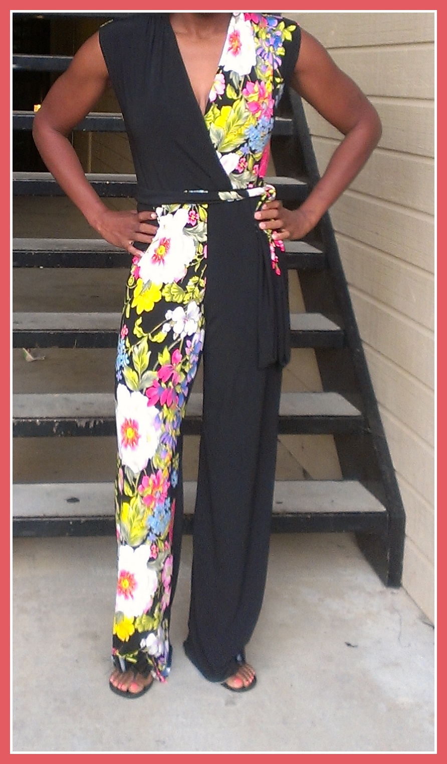 Here is the fabric Link.. It was super cheap . This fabric had a unique pattern … it had flowers running down the middle ONLY , so I decided to make alternate sides of the jumpsuit flowers .. and the back .