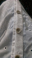 only problem was I had no idea what the fabric was called that her dress was made from .I did some searching and after a while ,WITH THE HELP OF FABRIC SUGGESTIONS on back of pattern, i discovered that it was called EYLET fabric, yes the same fabric they use to make curtains …. 🙂