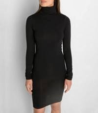 Oh WOW did this end up being a lot of work ! I started with a regular turtle neck that I had. I tried it on to make sure that it fit and measured where it fell around the bottom of my waist and measured from that point to the widest point of my hips. After I got that measurement I then took my hip measurment ( at the widest point ) divided that in half and then half again. After I had my hip measured I then measured from the hip down to where I wanted the dress to fall plus hem allowance.