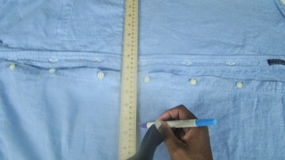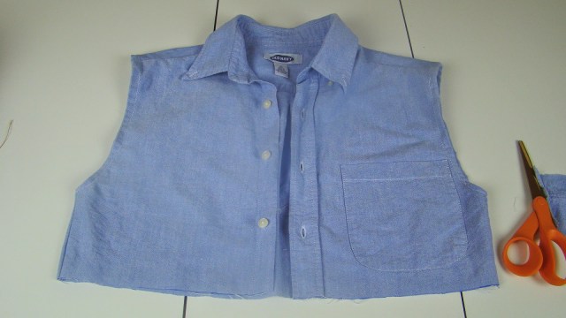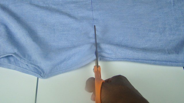 Next I laid the shirt flat and folded it with the sides touching … I smoothed the shirt out and made sure that all sides where even .. BEFORE I cut .. then I cut away the access fabric … from bottom of armhole all the way down the shirt