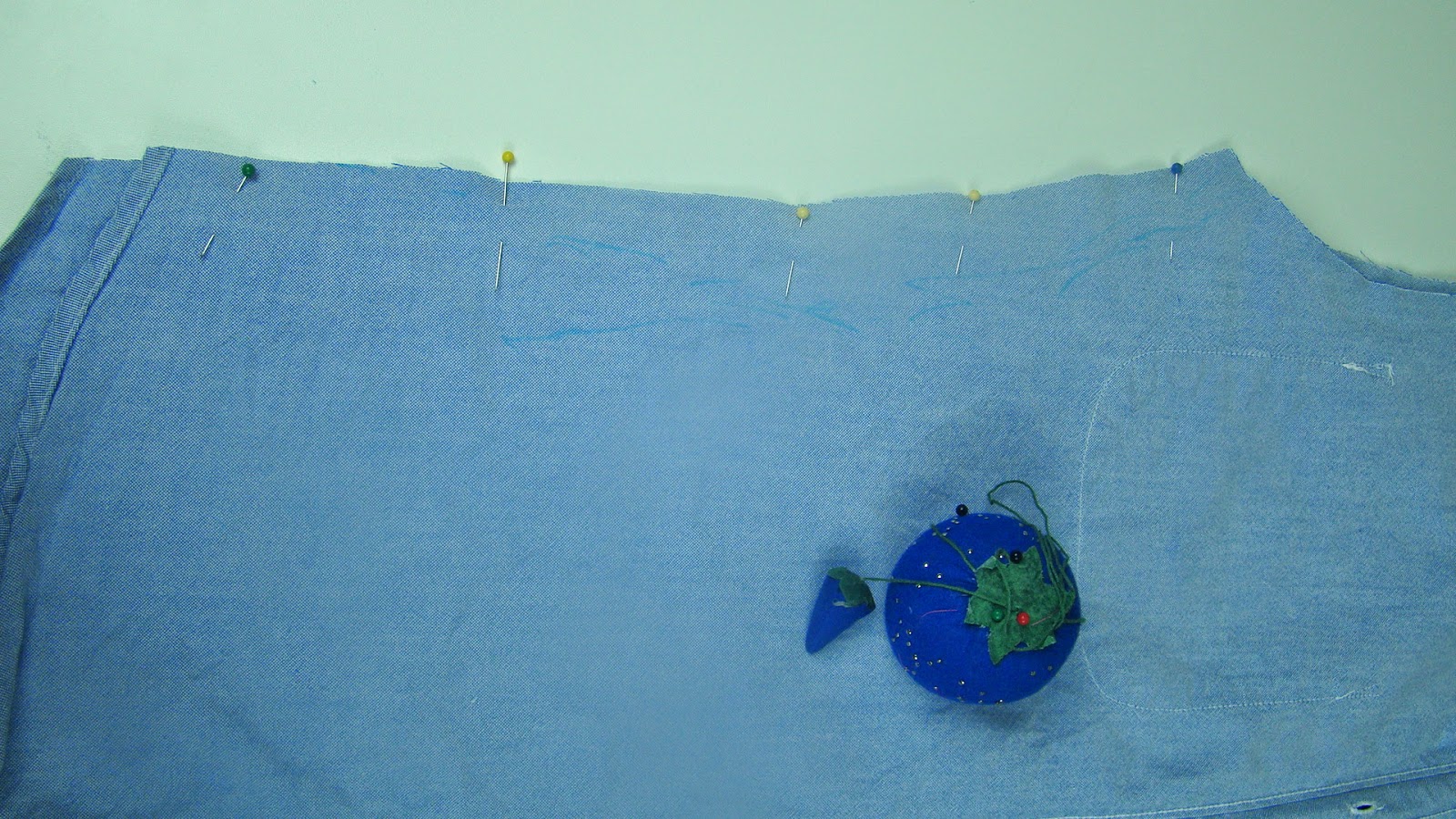 Next I pinned the shirt and stitched it on a 5/8 inch seam ..