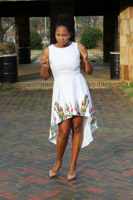 I modified the high low dress on the pattern by NOT adding the contrasting piece at the bottom …
