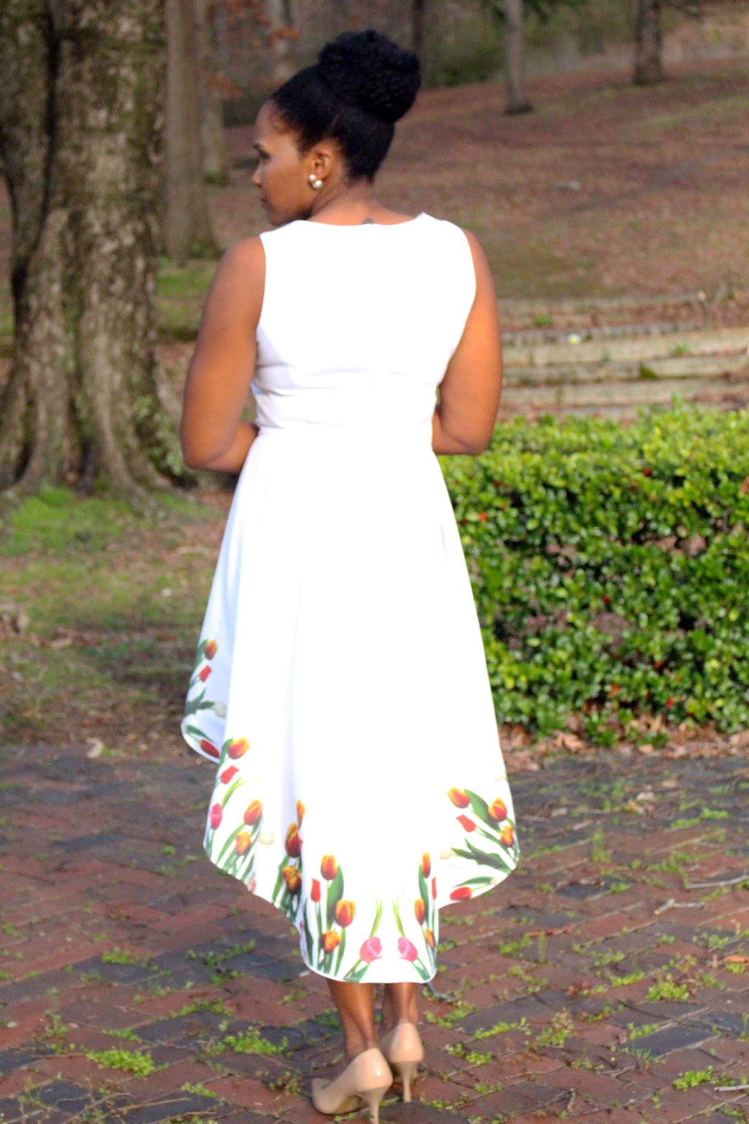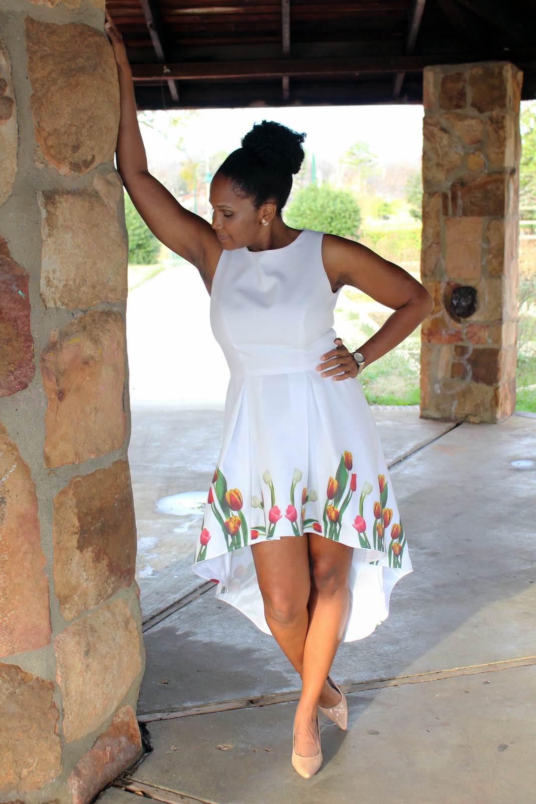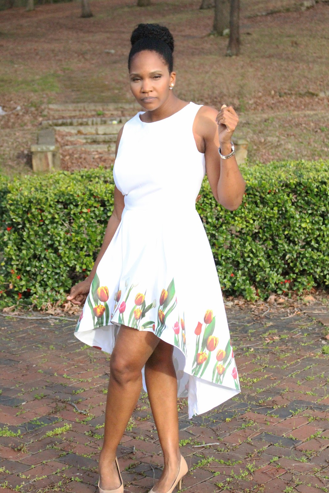 I modified the high low dress on the pattern by NOT adding the contrasting piece at the bottom …