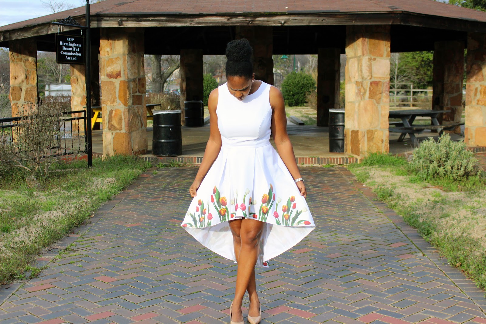 It took a few days for the paper to get here so in the mean time I finished my bodice and lining piece. Finishing the lining was a breeze but before I could join my lining to my bodice I had to complete my skirt portion . I found the image that I wanted to use on the skirt border ( tulips was actually my husbands idea) , printed it out on the paper and used a Heat Press to bond the image to the fabric .