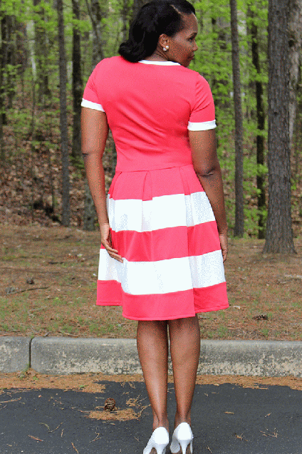 The next and hardest part of the challenge for me was was figuring out what colors I wanted to use because I felt that was SUPER important . I wanted to use colors that complimented each other . I had recently traveled to Fine Fabrics in Norcross , Ga and purchased a medium weight Coral knit . I decide to use it because of the vibrant color but I still needed another color to compliment it . I decided to go with a creme knit to give the Coral the highest contrast possible!