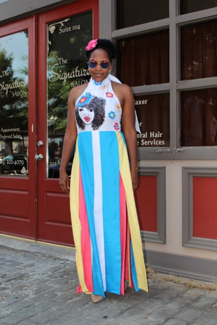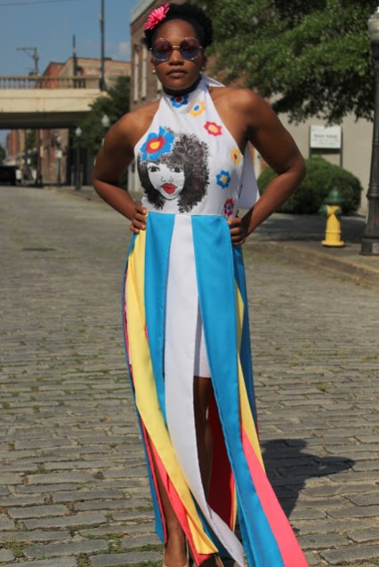 This concept came about bit by bit .. I started the process only knowing that I wanted to create a dress that I painted ! The first step was finding a pattern.. I knew that I wanted a halter top look but I needed something that wouldn\’t make it hard to wear a bra *wink*. I decided on one of MiMI G\’s new patterns , I hadn\’t sewn one yet so this gave me the perfect opportunity !
