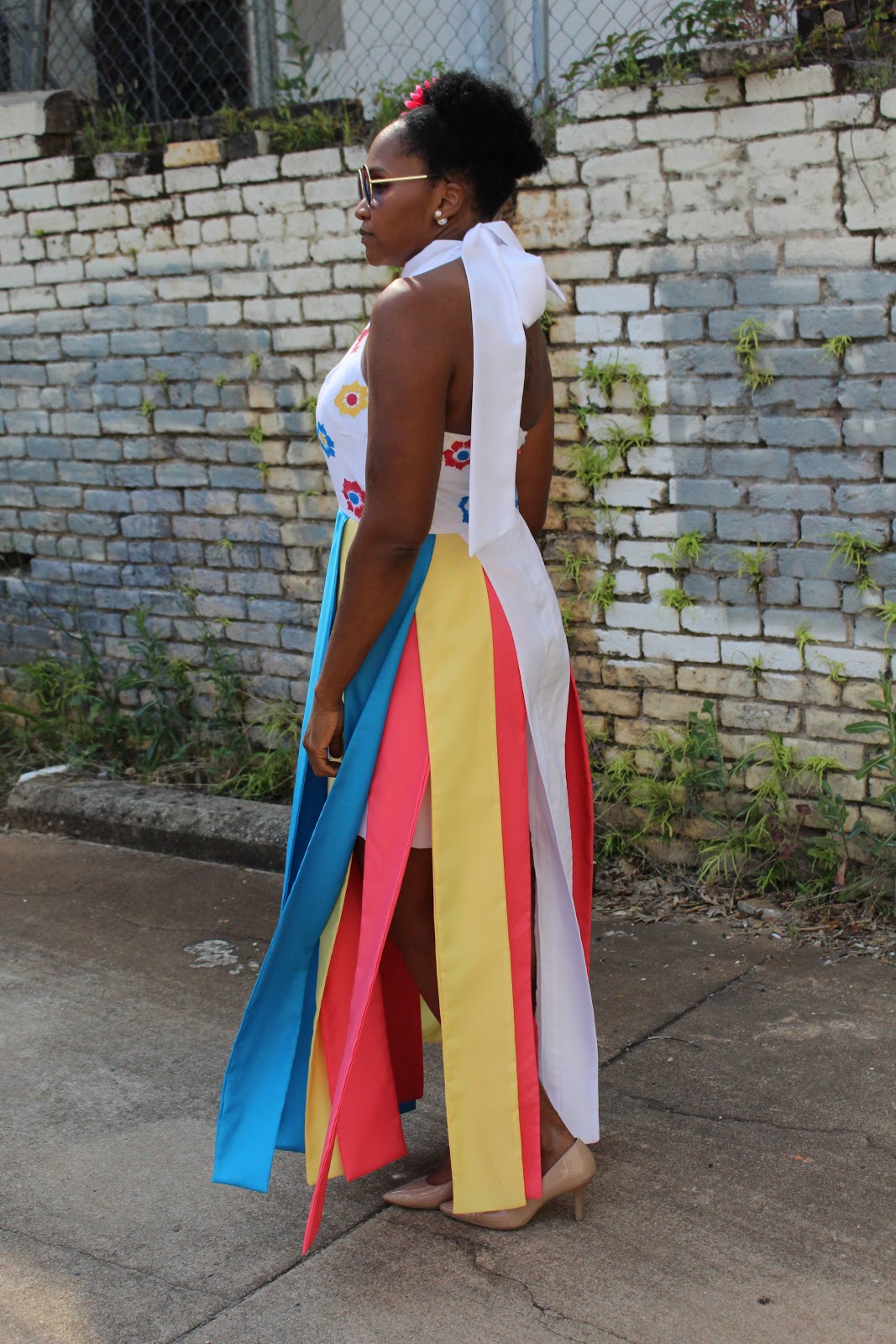 The colors chosen where based on the colors that \”Struck me\” as I was walking thru the fabric store. I wanted a light weight material for the skirt so that it flowed when I walked ..I toyed around with the idea of using chiffon but that would have been a HORRIBLE headache . I decided on using crepe ..it was light weight and had a little texture to it which is what I wanted …