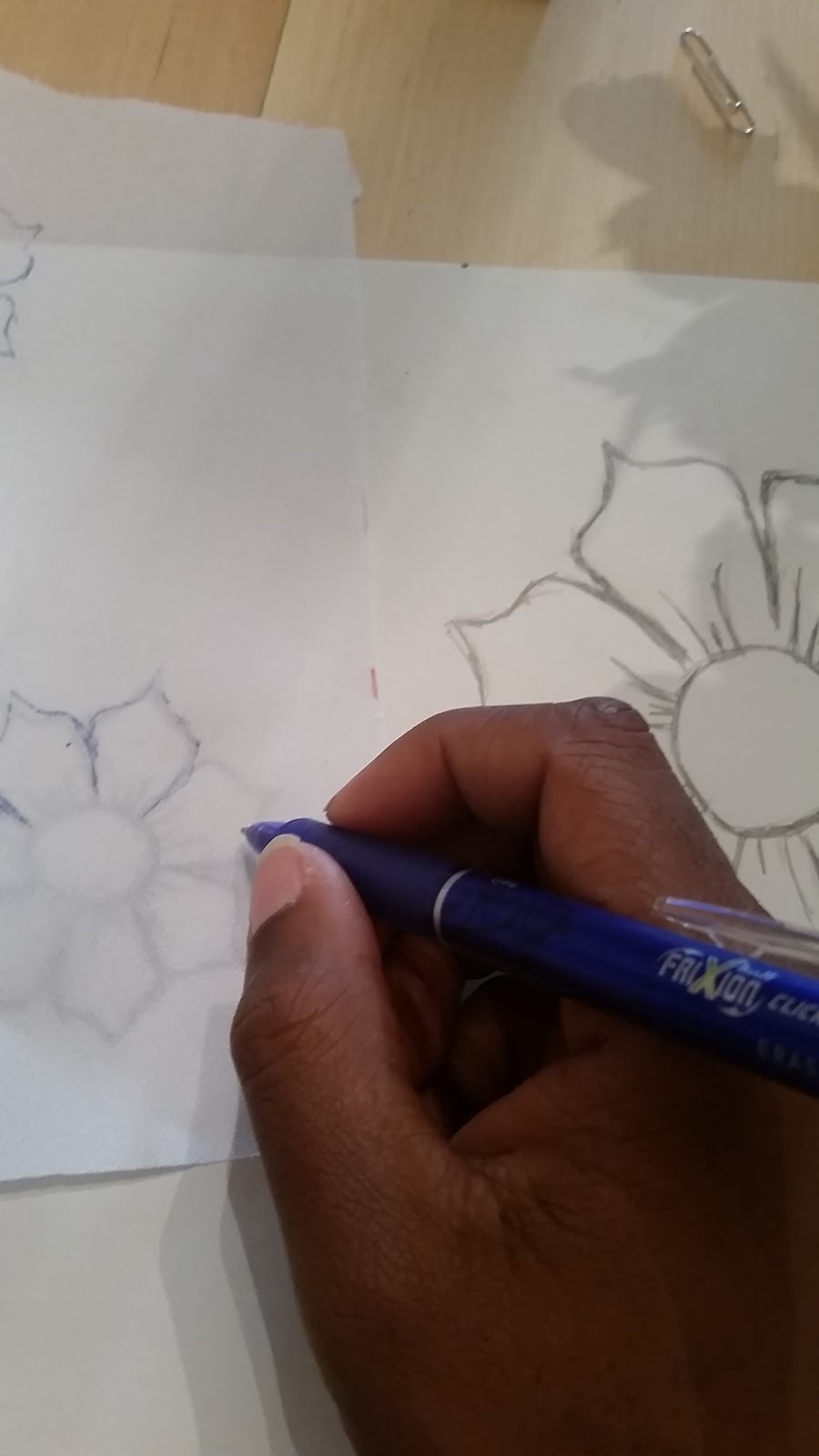 I drew the face and flowers out first then used a \”Marvy \” transfer pen trace the face onto the tracing paper. The same was done for the flowers and then I painted the entire design …
