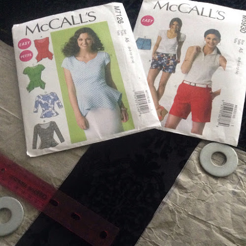 The fabric I used was a doubt knit with a velvet print . It was a medium weight fabric so I opted for using binding tape to close off the hem around the arms and legs !