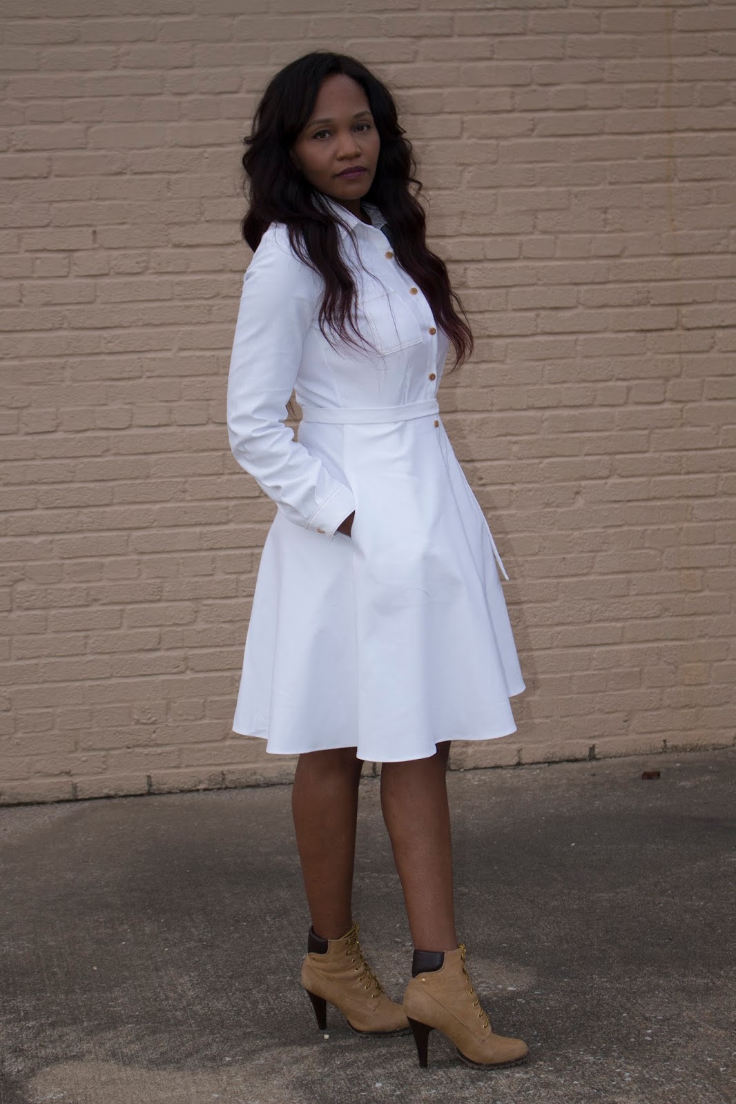 Before I left the store I settled on doing View A and B Combined . I wanted the the denim dress feel but with a Classic Crispness to it !!!