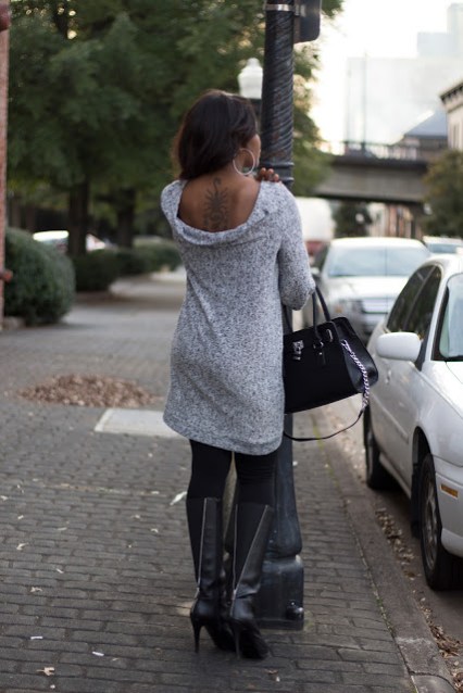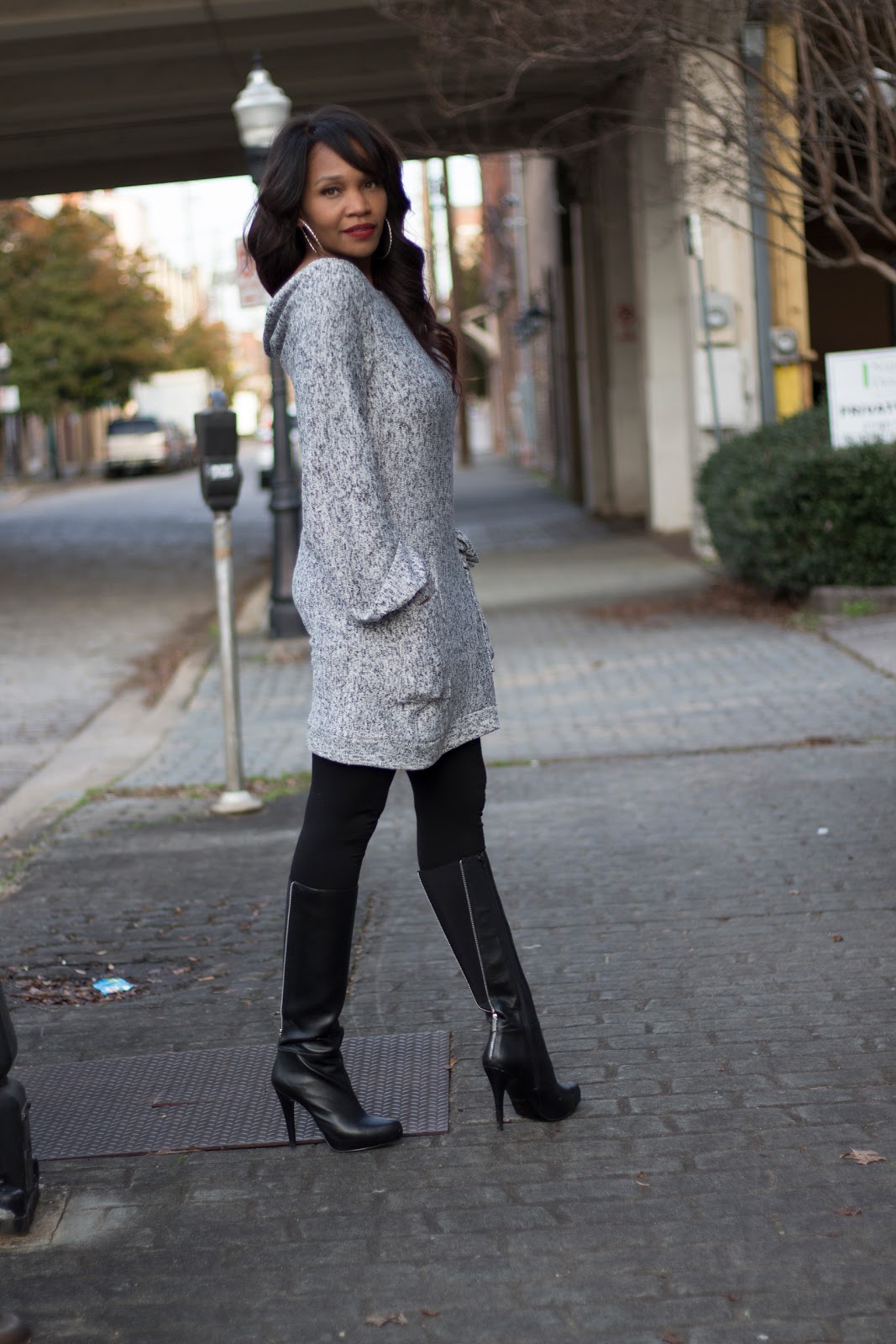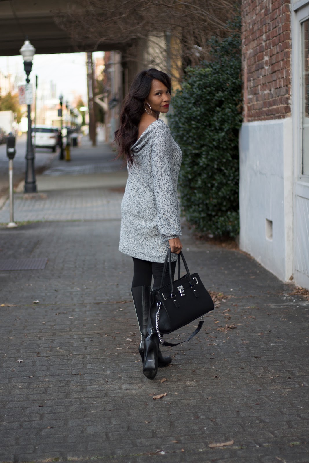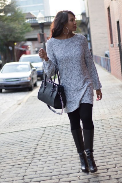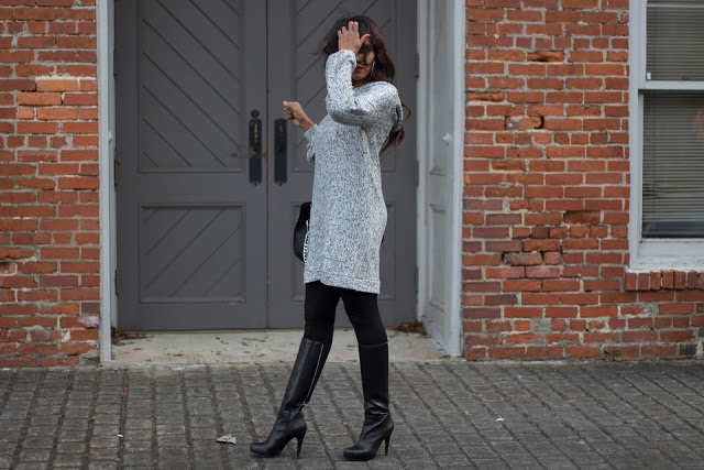 I love being able to throw on a pair of tights and a long sweater with  tennis shoes … or heels for a night out with the hubby ! With that idea in mine I set out to make my Sweater !