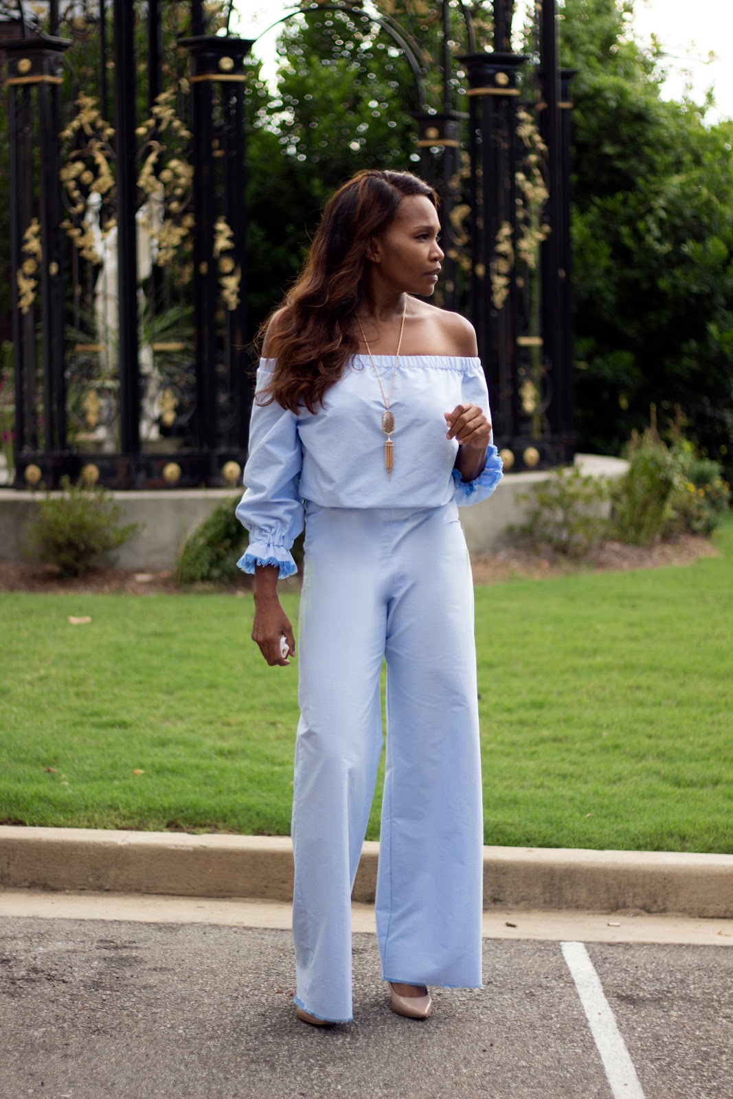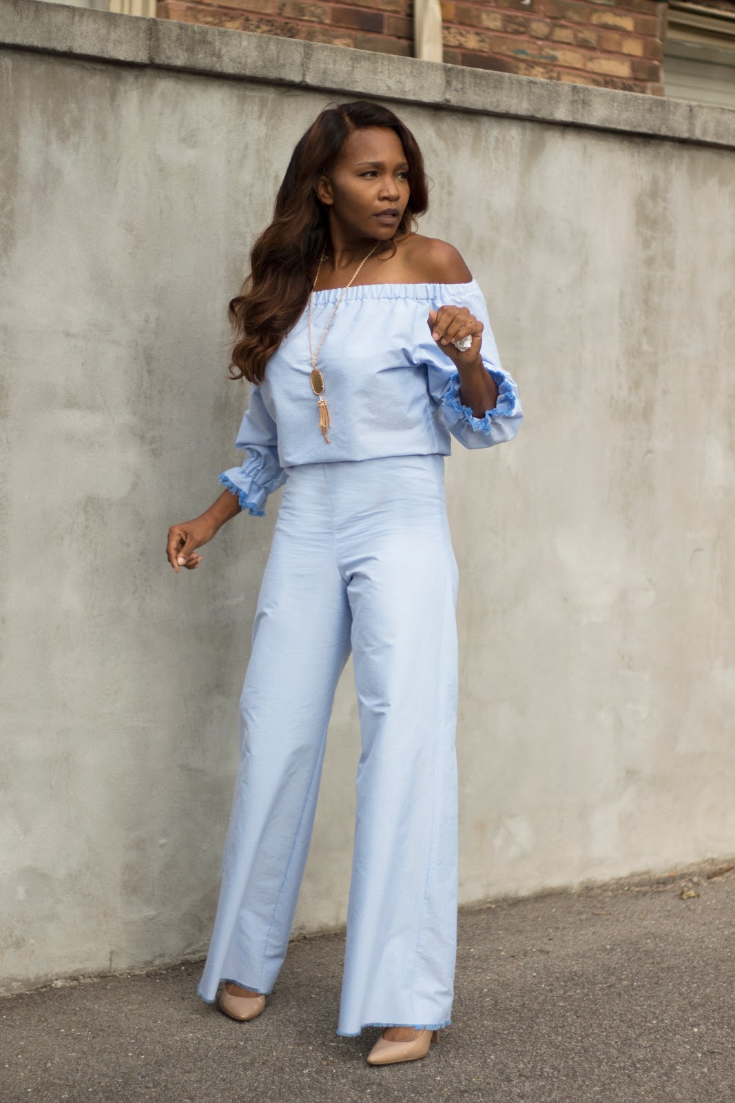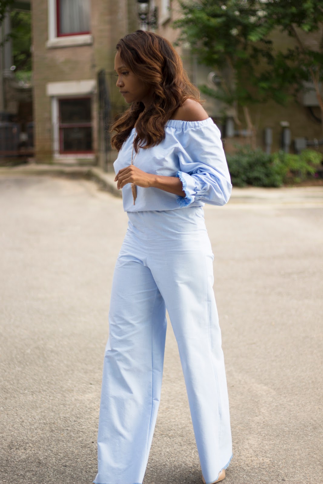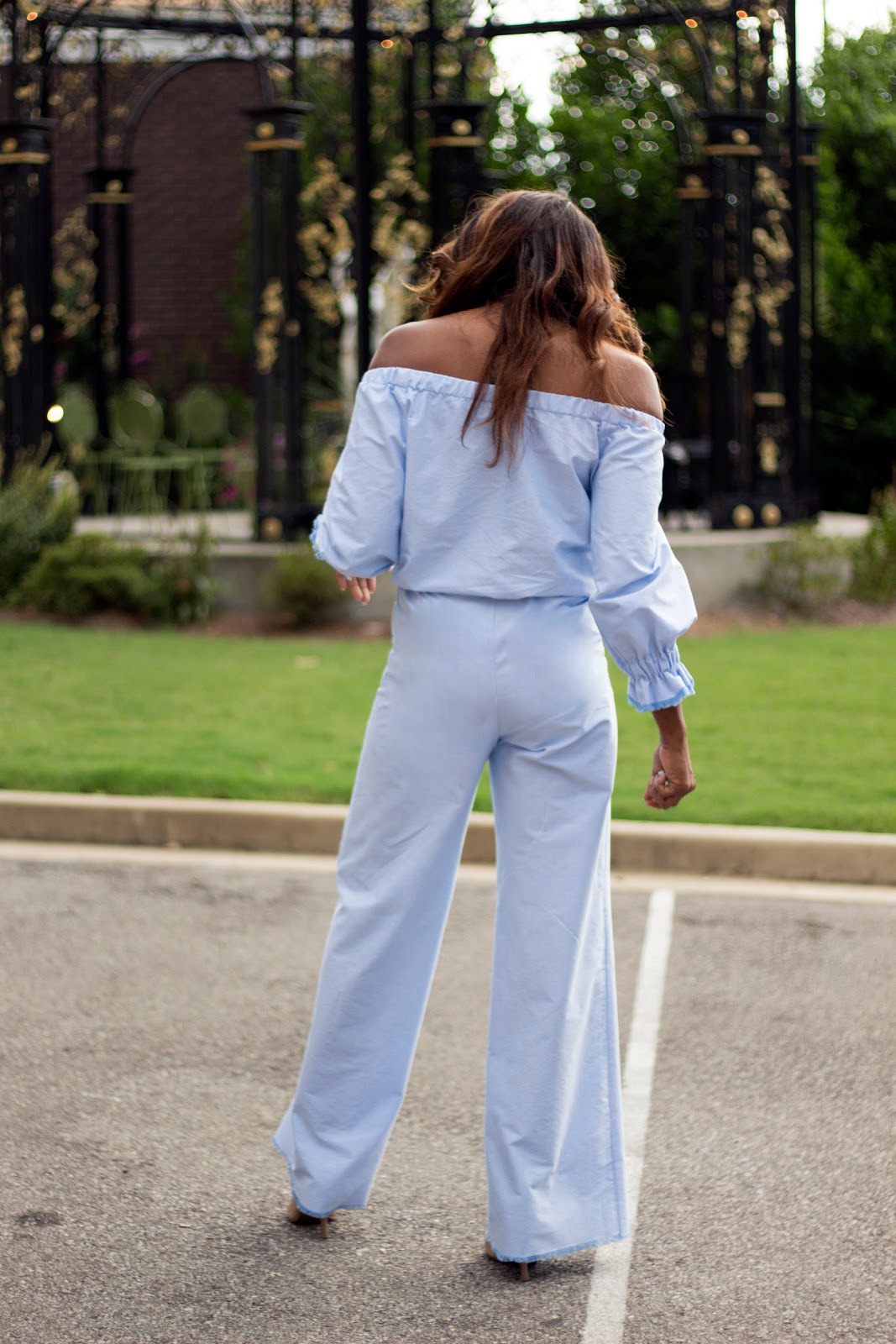 As you may know \”off the shoulder\” has been THE trend for this summer, but one thing I have seen very few of is a Off the Shoulder Jumpsuit !