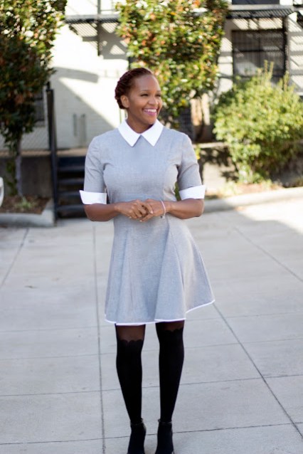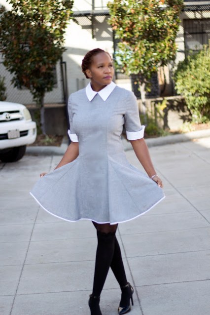 I decided to make her because I\’m really liking structured pieces lately. I loved the collar detail on this dress pattern , it really gave structure to the dress .