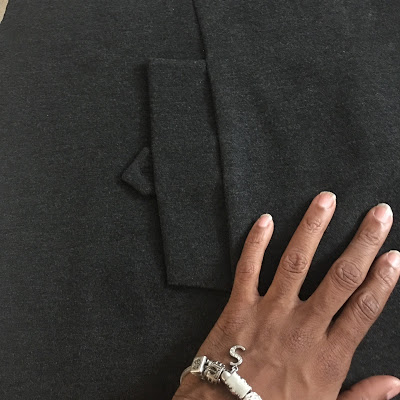 The fabric that I used was a Wool/Knit , it felt almost like a scuba knit with a Wool feel. I purchased it from Fine Fabrics in Norcross Georgia . OMG! If you have never been to this place .. you MUST take a trip . I live in Bimringham , AL which is about a hour and a half from there . I make it a point to travel there once a month to stock up! I visited fine fabrics on the way back from a soccer trip this time . I already had in mind that I wanted to make a coat for him so I was looking for wool or a wool blend. This fabric felt so smooth to the touch and had a really lofty drape . I knew I could get a sleek look out of this fabric . I ended up taking the last on the bolt . Husband loved it so we where a go !