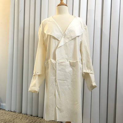 I made a muslin first to check fit and length. I ended up taking about 4 inches out of the body and 2 inches from the arms . I adjusted this on the pattern pieces and cut my fabric !