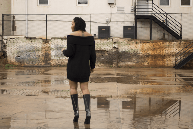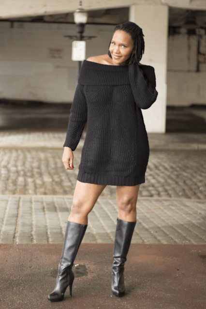 I decided to pair this cute and comfy Sweater Dress with some sexy Aldo boots Ive had for a few years!