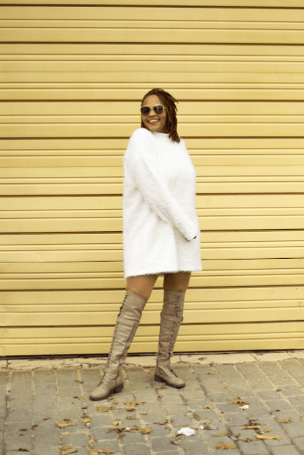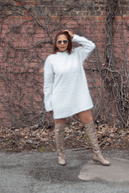 I sewed her up two sizes larger to REALLY get the oversized Sweater look.