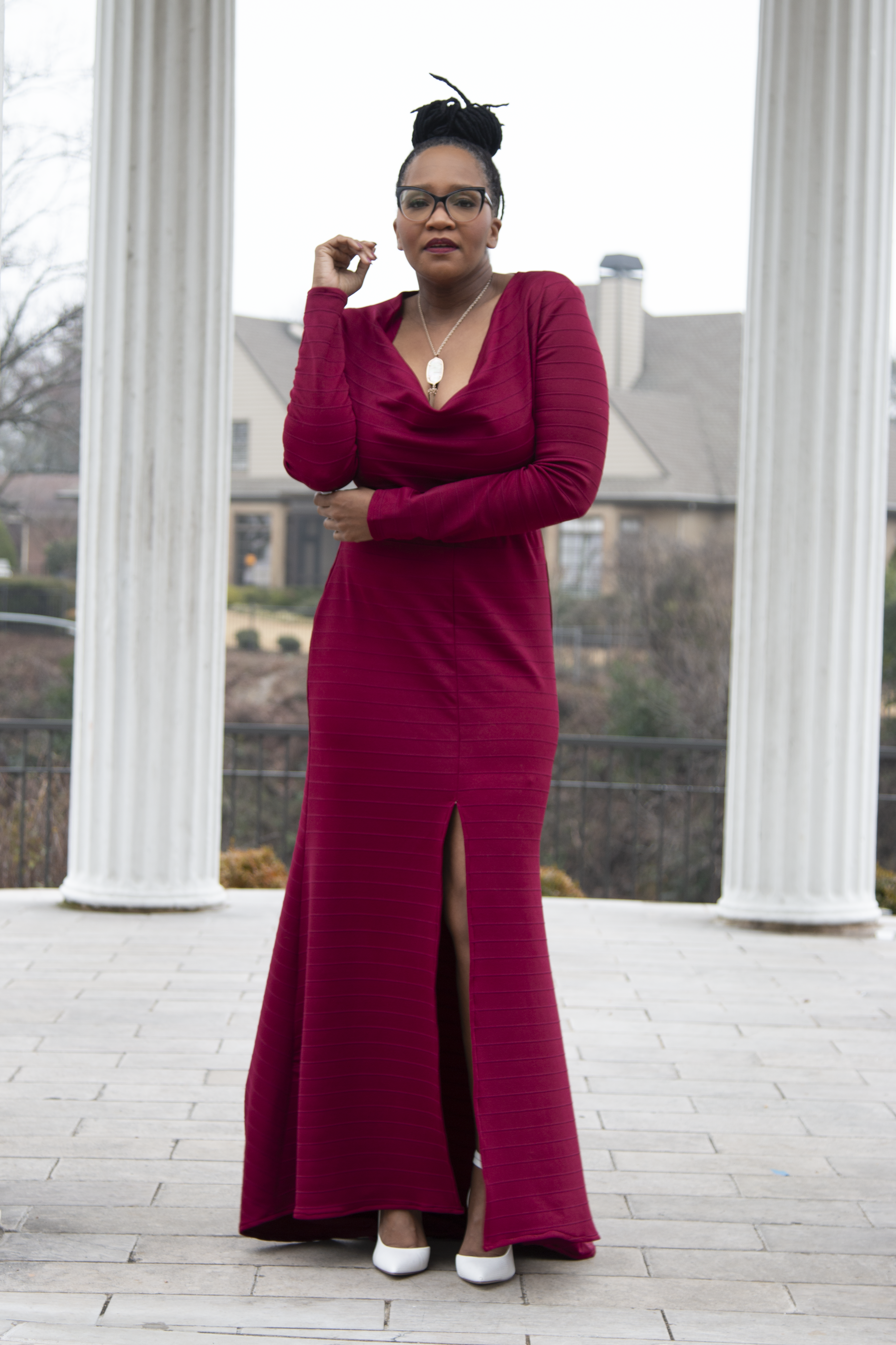 The Fabric was a ribbed Stretch Knit and it was the perfect fabric to give the dress both a formal or semi-formal feel.